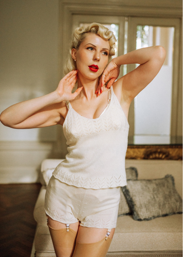 Knitted lingerie set ''Paeonia'' l Vintage Inspired Design l in Milky White